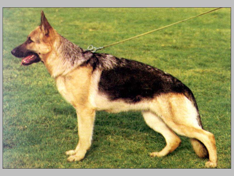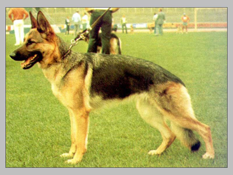 Medium tall, medium strong, very typey, dry and firm male with high withers, good back line and very good croup. Good angulation and chest proportions, correct front. Walks straight, ground covering, powerful gaiting. Sound temperament, hardness, courage and fightdrive pronounced.